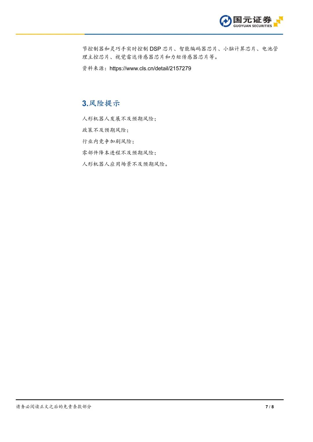 人形机器人发展不及预期风险;政策不及预期风险;行业内竞争加剧风险;零部件降本进程不及预期风险;应用场景不及预期风险。