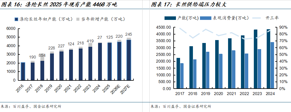 一、当前涤纶长丝行业处于承压阶段,核心在于供给侧产能投放节奏