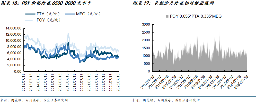 ④涤纶长丝:价格相对平稳,价差尚处健康区间