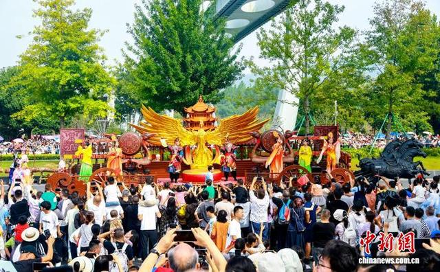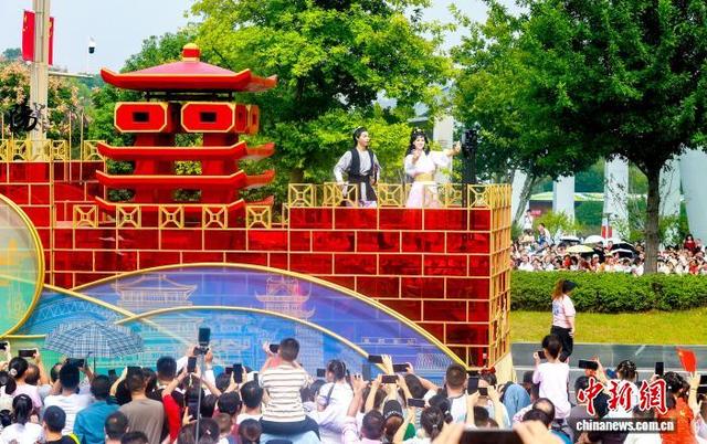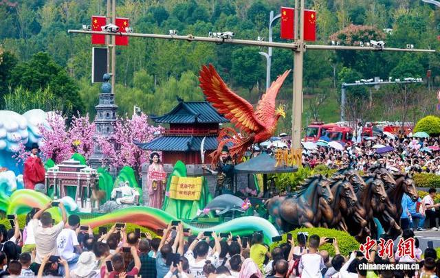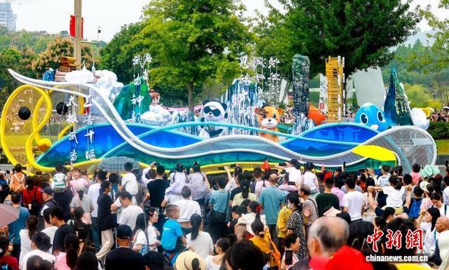 10月1日,2025“河山添锦绣——文旅IP城市大巡游”在武汉东湖高新区(又称“中国光谷”)举行。23台花车、38家国内外演艺团队联袂呈献视听盛宴,与武汉市民、游客共同庆祝中华人民共和国成立76周年。图为市民与游客观看湖北各市州造型独特的花车。中新社记者 张畅 摄
