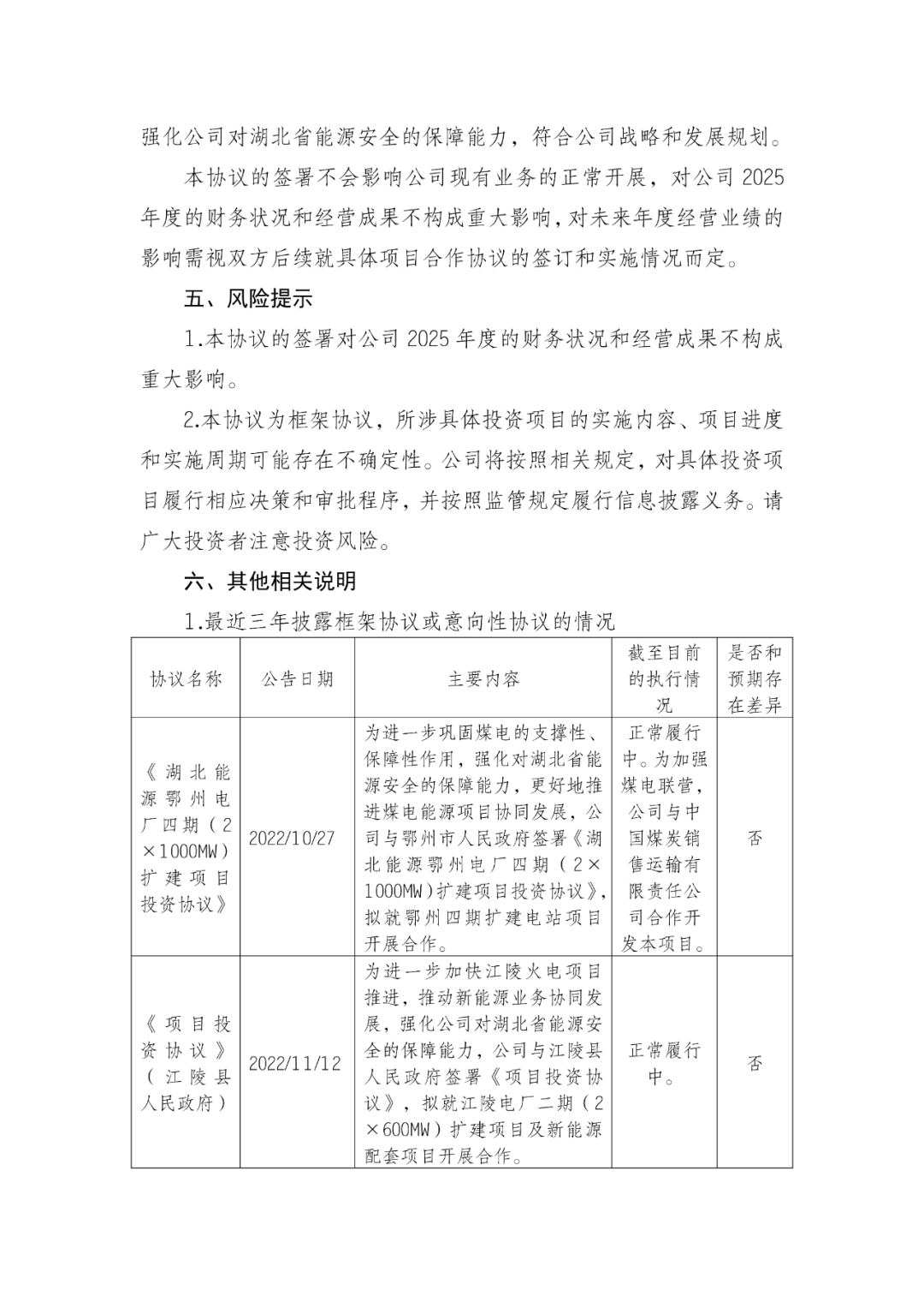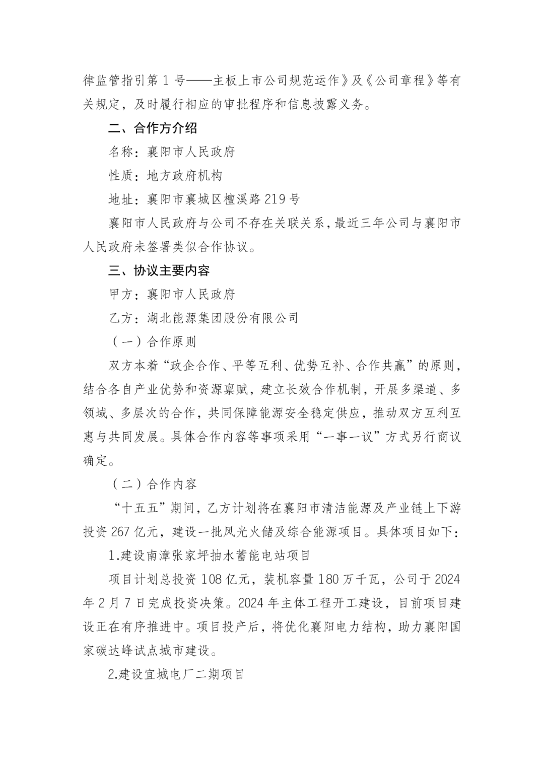 公告表示,2025年9月29日,湖北能源集团股份有限公司与襄阳市人民政府本着平等互利、合作共赢的原则,签署了《深化合作协议》。