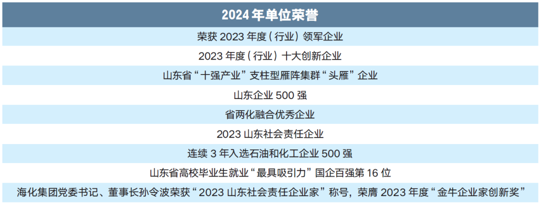 积蓄新优势,数转智改提质效。抢抓数字经济发展机遇,发力“数字化元年”,聚焦流程再造、数转智改、工业互联“三项改革”,围绕零签字、零手动、零报表“三零”目标,倾力打造智能制造示范工厂和盐化工产业大脑。专班推进以“零手动”为核心的智能工厂建设。加快业财税资档一体化建设,财务共享中心于2025年1月份试运行。数字档案系统、司库建设上线运行。公司入选山东省首批数字经济“晨星工厂”入库培育名单,获评“省级智能制造场景”企业。