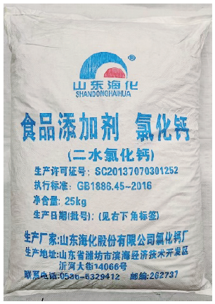 由山东海化股份有限公司氯化钙厂生产,产能40万吨/年,全国市场占有率14%。目前产品分为片状氯化钙、球状氯化钙、粉状氯化钙。产品可作为融雪剂、防冻剂、干燥剂、抑尘剂、添加剂,广泛应用于道路、石油钻探、采矿、食品行业和农业等众多领域。销往全国30多个省市,出口欧洲、中东、东南亚、俄罗斯、美国、日本、韩国等10多个国家和地区,在国内外用户中享有较高声誉。