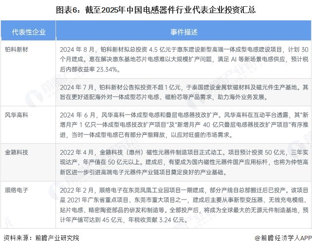 电感器件产业代表性企业最新投资动向
