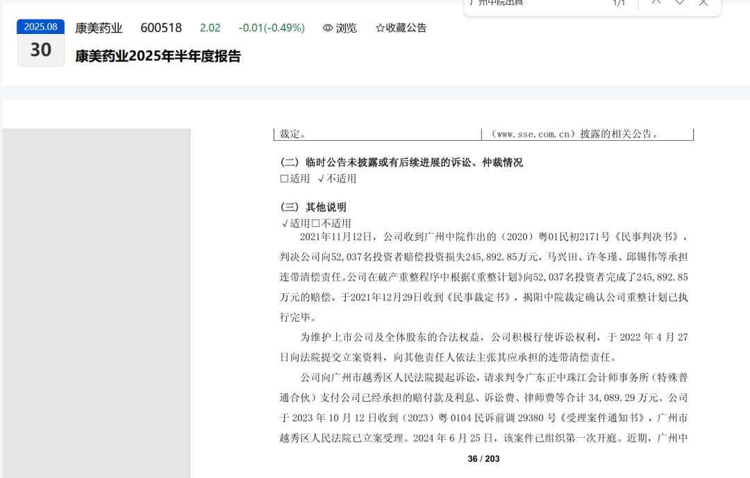 康美药业股份有限公司2025年半年度报告:
