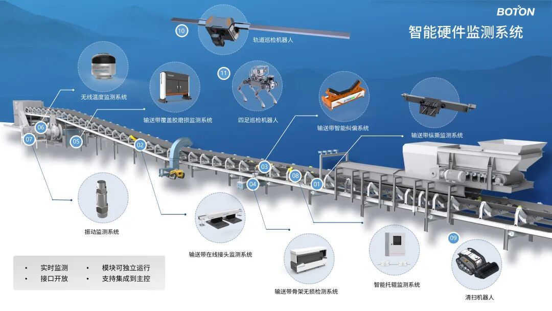 在宝通总部的智能实验室,技术团队现场演示了多项尖端科技成果:AI纵撕监测系统通过深度学习算法实现毫米级精度的撕裂检测;X光智能扫描系统采用高精度成像技术,可实时识别输送带内部损伤;智能巡检机器人具备自主导航和多传感器融合能力,实现24小时不间断安全巡查;无人机远程监控系统通过5G传输和AI图像识别,实现输送系统全域立体化监控。这些智能化解决方案正在全球矿山中广泛应用,为安全生产和高效运营提供技术保障。