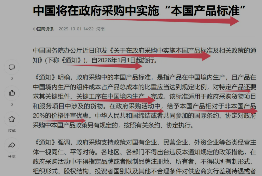 自主可控方向,节前最后一个交易日盘后,国办印发《关于在政府采购中实施本国产品标准及相关政策的通知》,自2026年1月1日起施行