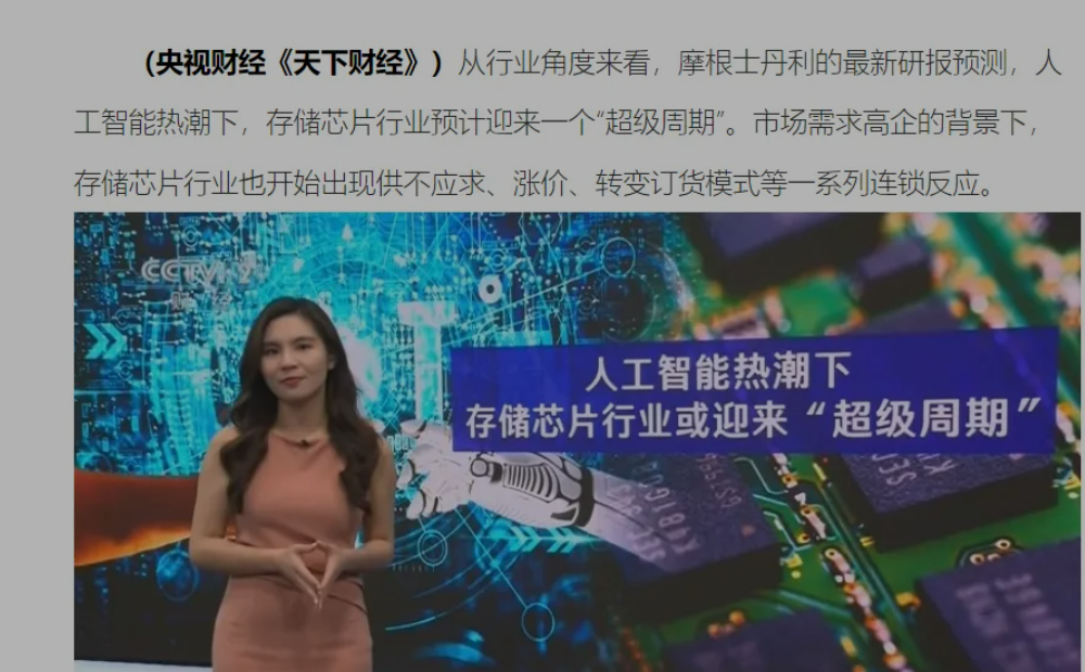 央视财经假期报道 存储芯片行业将迎来“超级周期”