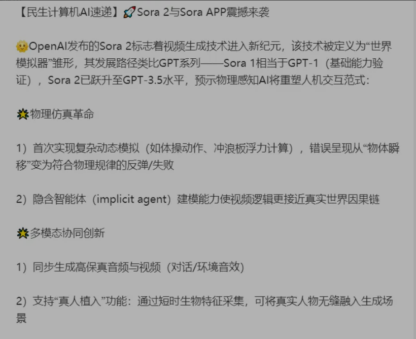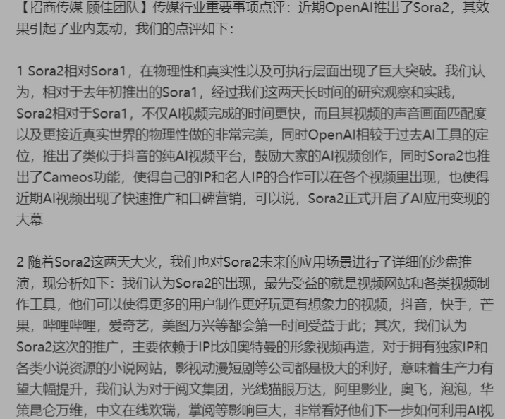 关于sora2,机构假期点评也很多,主要利好AI应用,特别是视频方向。