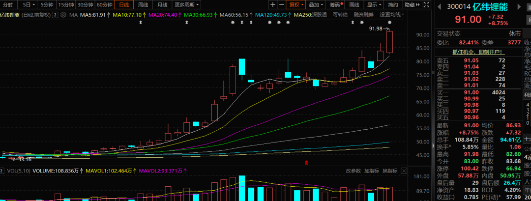 节前,板块就已经大涨了,主要是固态电池厂商、材料供应商以及储能为主,不止一遍的讲过,宁德时代是绝对的全球龙头,趋势走得很好已经成为了创业板的定海神针,拔高整个新能源板块的估值。