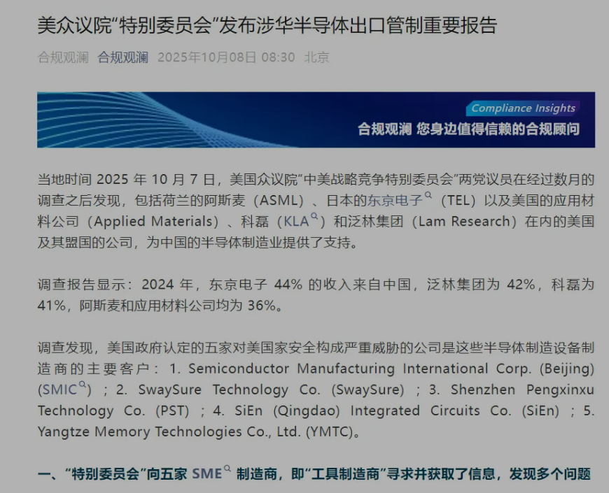 今天最新消息,美众议院“特别委员会”发布涉华半导体出口管制重要报告