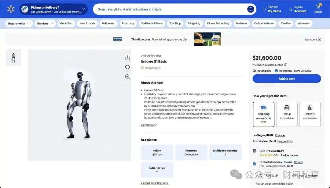 宇树机器人上架沃尔玛