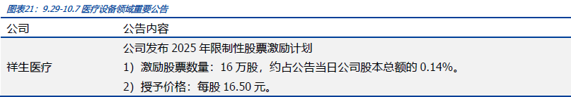 上周(9.29-9.30)申万医药指数上涨1.58%,医疗器械指数上涨1.97%,跑赢医药指数0.40个百分点。分细分领域看:医疗设备指数上涨2.47%,医疗耗材指数上涨1.71%,体外诊断指数上涨1.26%。