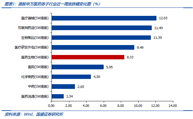 十一期间(9.29-10.7)港股申万医药指数上涨8.33%。其中医疗器械、互联网药店、生物制品、医药研发外包指数涨幅超过医药板块整体。