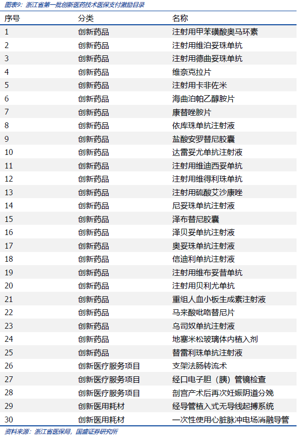 9月24日,浙江省医保局发出《关于公布第一批创新医药技术医保支付激励目录的通知》,公布了该省第一批创新医药技术医保支付激励目录,包括25个创新药、3个创新医疗服务项目、以及创新医用耗材。