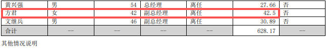根据该公司2023年年报披露,方君女士2023年度从公司获得的税前报酬总额为42.5万元。