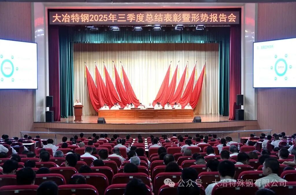 金秋九月,硕果飘香。9月27日,大冶特钢召开2025年三季度总结表彰暨形势报告会。公司党委书记、总经理刘文学作“聚焦目标精准发力、攻坚克难全力冲刺,为决胜全年任务目标而努力奋斗”的工作报告,吹响“决胜四季度,打好收官战”的冲锋号。