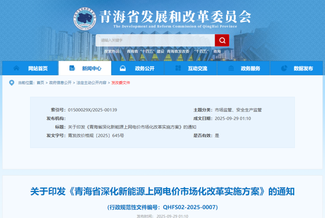 青海省深化新能源上网电价市场化改革实施方案