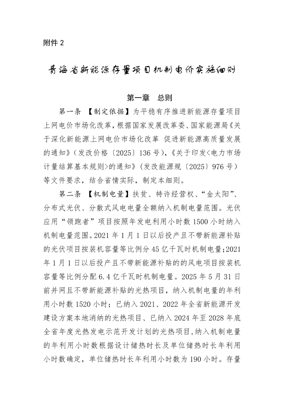 2.青海省新能源存量项目机制电价实施细则