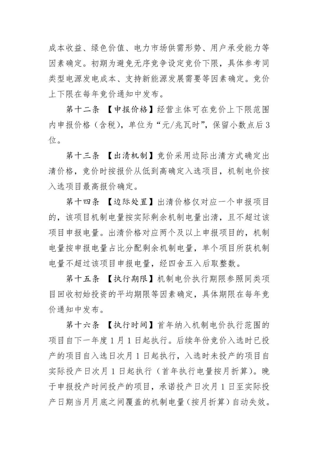 执行期限:机制电价执行期限参照同类项目回收初始投资的平均期限等因素确定,具体期限在每年竞价通知中发布。