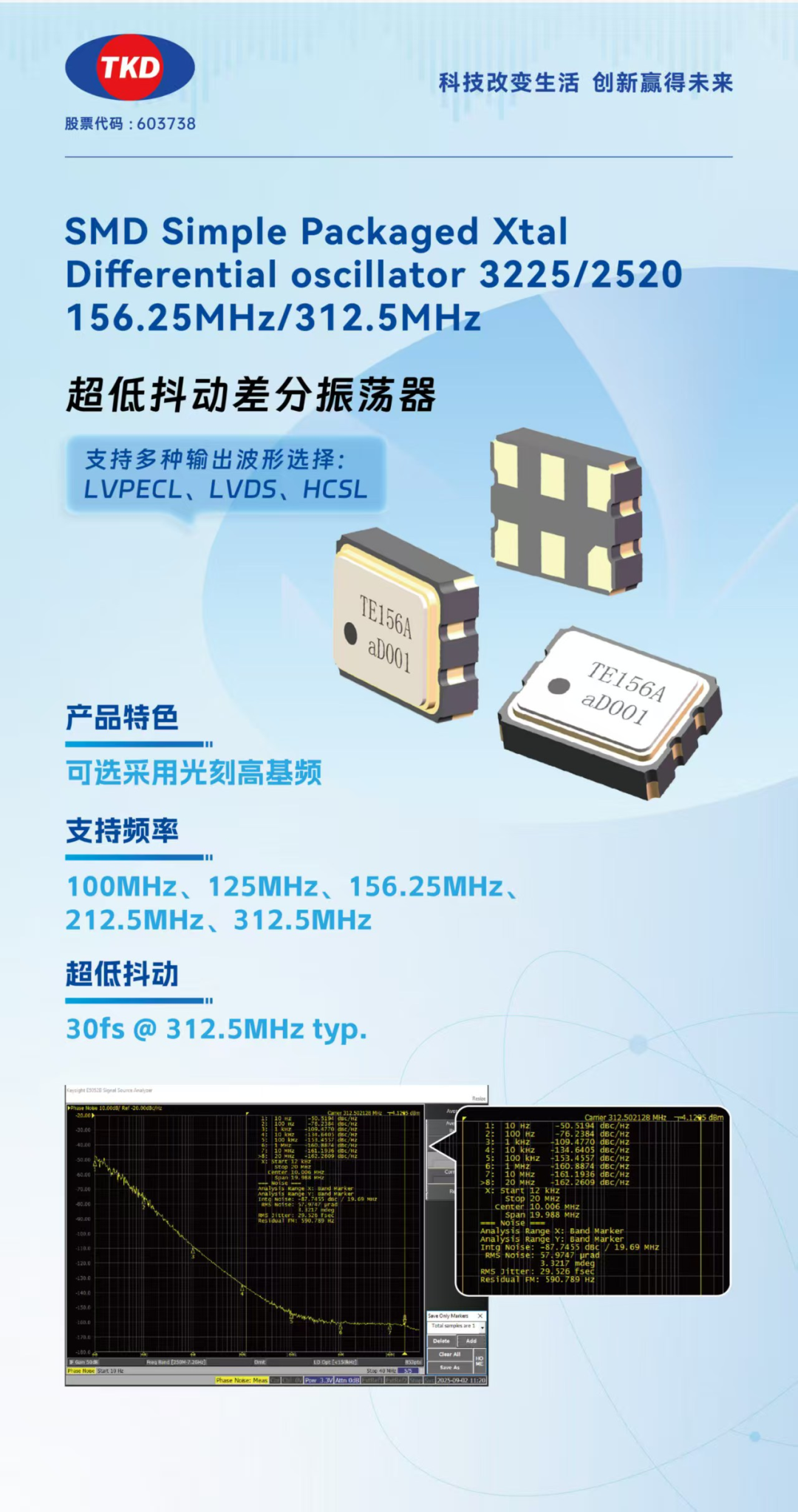 ●高频差分晶振:是驱动高速通信与计算系统的核心时钟引擎。通过差分输出有效抗干扰,为1.6T光模块等高速接口提供纯净时钟基准,确保数据精准传输,全面赋能数据中心、5G及AI前沿应用。