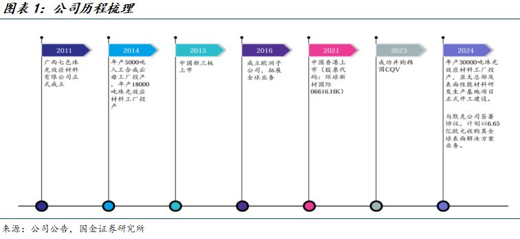 公司是中国最大的珠光颜料生产商,成立于2011年,2021年赴香港上市。截至2024年底,公司生产销售1179种珠光颜料产品,主要包括合成云母基产品、天然云母基产品、玻璃片基产品和氧化硅基产品。