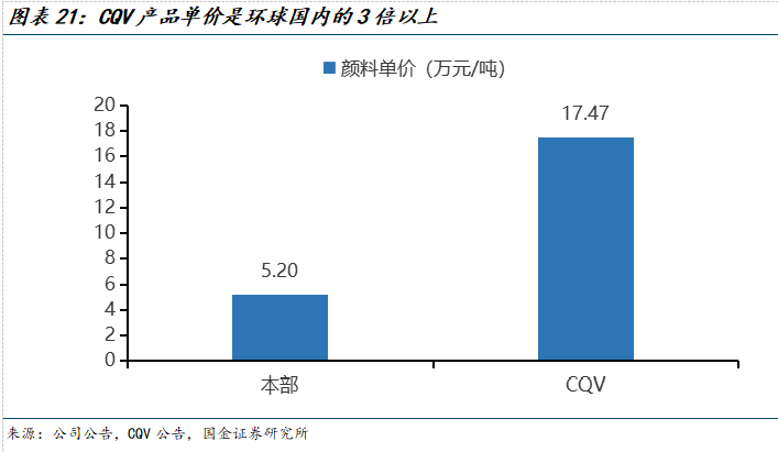 参考并购CQV,默克珠光颜料主要面向汽车级和化妆品级,收购默克后、本部七色产品结构有望升级,单价/盈利能力有望逐步上行。