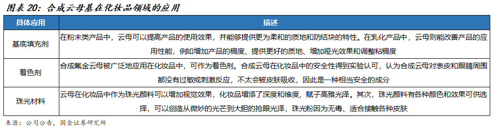 以化妆品行业为例,云母在化妆品领域应用范围广泛,可作为基底填充剂、着色剂、珠光粉等使用。此外,客户对化妆品的安全性要求逐渐提高。合成云母因其成分纯净杂质少、透明性好,各性能均优于天然云母,目前逐渐取代天然云母、成为未来化妆品行业中的主流趋势。