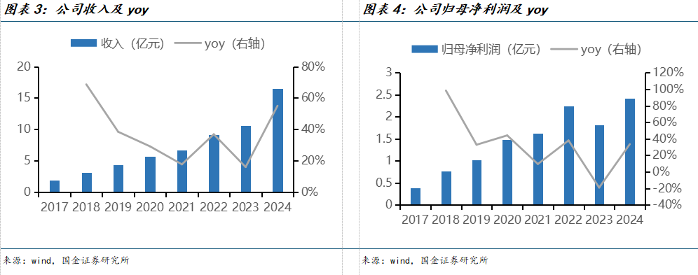 经营表现:2017-2024年公司营收、归母净利CAGR分别为36.2%、29.8%。