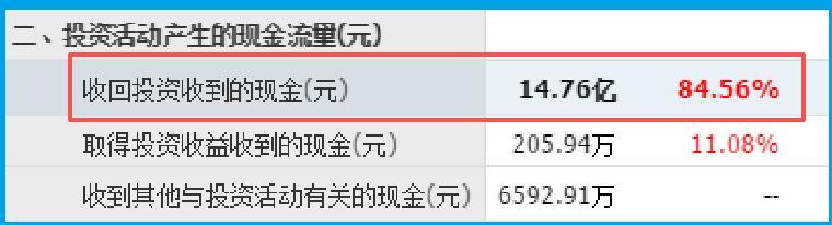 另一个值得注意的数据是,公司收回投资收到的现金为14.76亿元,同比大幅增长85%。