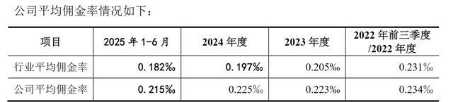另外,招股书中显示,东莞证券的佣金费率从2022年的0.234%下降至2025年上半年的0.215%,虽然略高于行业平均佣金率,但仍然随着行业整体呈现趋势下降。