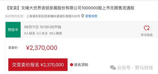 京东司法拍卖平台显示,此次待变卖的文峰股份起拍价为237万元/100万股,约合2.37元/股。以此计算,此次待变卖的1.24亿股价值约2.94亿元。