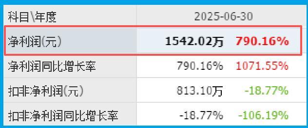 更令人惊讶的是,该公司2025年半年报显示,归母净利润同比增长790.16%,达到1542.02万元。