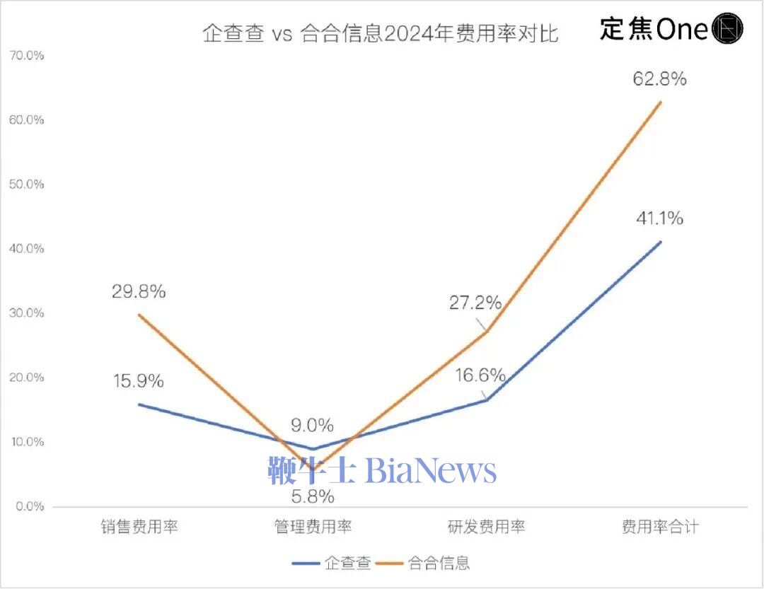但企查查在AI技术上的投入力度,明显不如对手。2025年上半年,它的研发费用率降到16%,合合信息则达到26%。