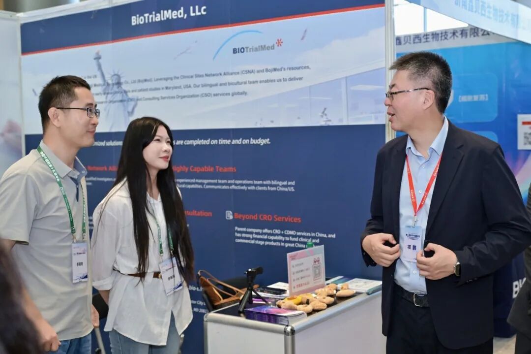 会议期间,博济医药的展台凭借专业的服务定位与丰富的业务展示,成为会场焦点之一。不少参会客商主动驻足展台,就潜在合作与具体业务细节等问题与博济医药团队展开交流。面对客商的咨询,博济医药团队充分展现了公司在医药研发服务领域的专业素养与服务能力。
