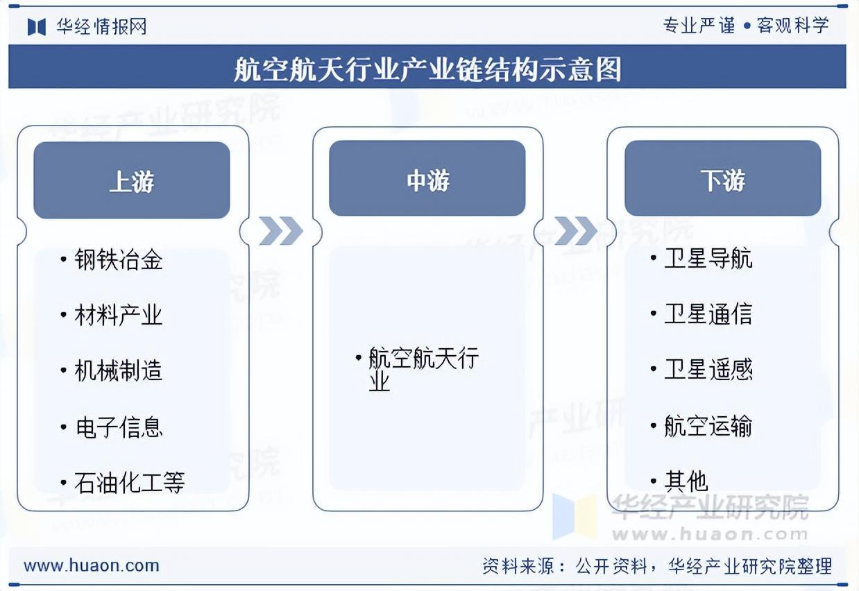 从产业链角度看,航空航天产业链涉及众多环节,包括设计、研发、制造、测试、运营等,各环节之间相互关联、相互依存。产业链上游包括钢铁冶金、材料产业、机械制造、电子信息以及石油化工等行业;下游包括卫星导航、卫星通信、卫星遥感、航空运输等领域。