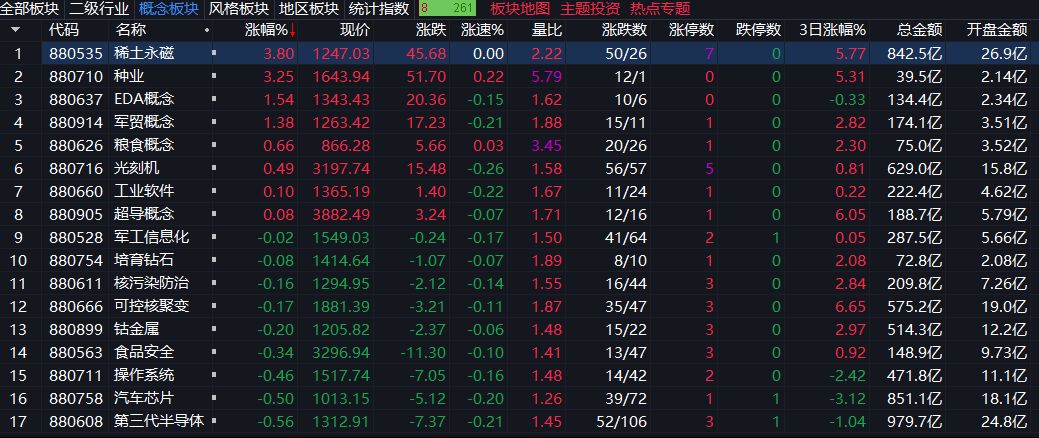 A股三大指数集体下跌,创业板指跌3%。盘面上,稀土永磁、小金属、华为欧拉、贵金属、EDA概念、转基因、氦气概念位于涨幅榜前列,机器人执行器、减速器、AIPC、3D摄像头、人形机器人、混合现实、智能电视、消费电子跌幅居前。