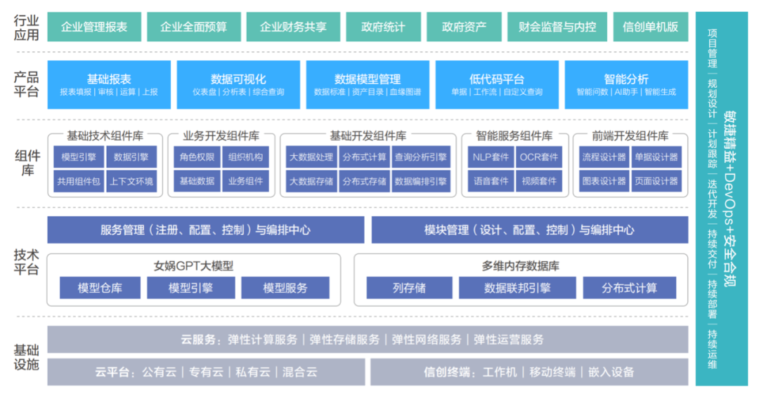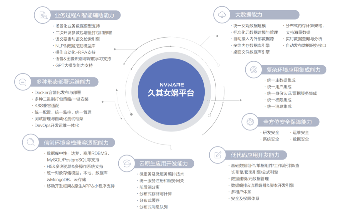 久其女娲平台聚焦八大能力建设,将成为政企复杂业务场景的创新中心、大数据及云计算时代的能力中心、赋能行业的应用中心。