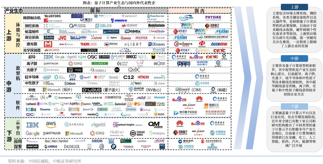 资料来源:中国信通院,中航证券研究所2.3全球量子计算产业链初具雏形
