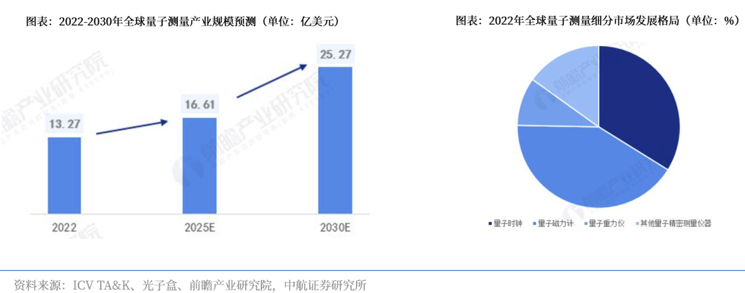 资料来源:中国信通院,中航证券研究所3.2.2量子测量:产业规模预测及细分市场格局