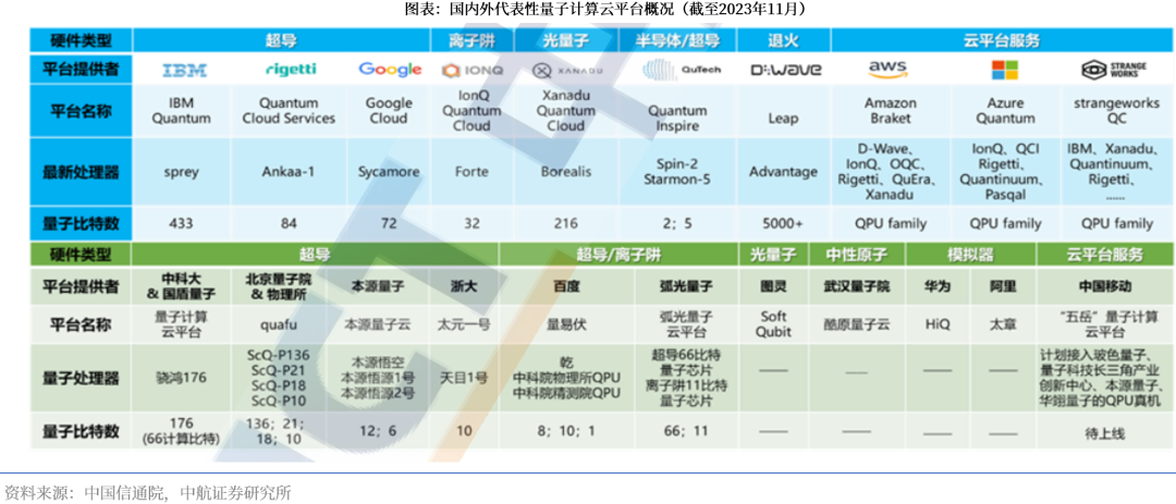 资料来源:中国信通院、《量子计算:下一个“兵家必争之地”》,中航证券研究所