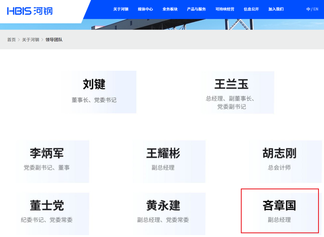 2025年10月14日消息,据河钢集团官网领导团队变更,新增一位副总经理。舞钢公司党委书记、董事长吝章国已任河钢集团副总经理。