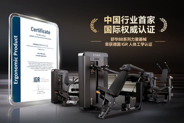 长期以来,中国健身器材企业多以代工模式参与国际竞争,而舒华体育近年来更多以自主研发与国际认证打破行业壁垒。此次展出的88系列力量器械,是国内首个通过德国IGR人体工程学认证的产品。该认证严格依据DIN EN ISO 26800(人体工学设计原则)和EN ISO 15537(物理特性适配性)两大国际标准,对产品的舒适性、操作性、耐用性及运动轨迹等维度开展严苛测试,确保设备全面贴合人体工学,为用户提供卓越的使用体验。