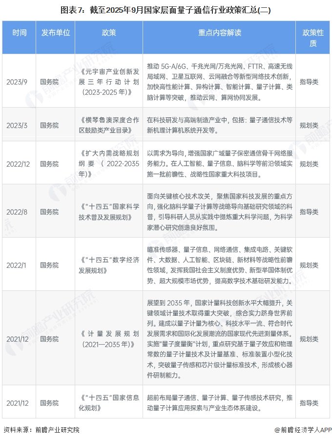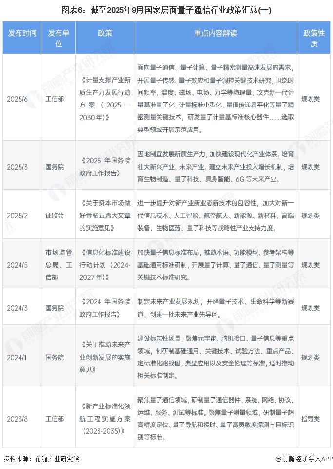 行业政策背景:政策为量子通信关键技术突破提供良好支持