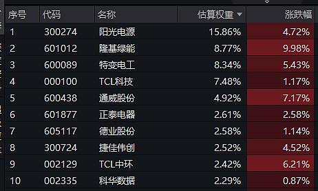 【$光伏龙头ETF(516290) 标的指数前十大成分股】
