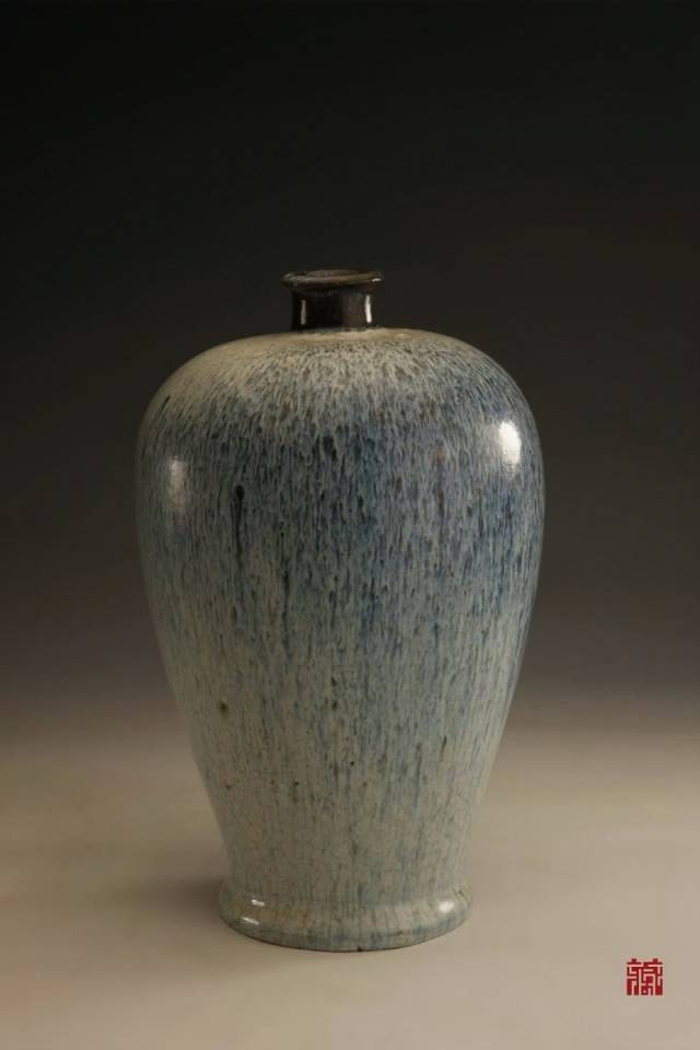 民国刘子芬在《竹园陶说》中提到,明代石湾窑仿制宋代钧窑的窑变釉,以蓝釉中映露紫彩者为最浓丽,粤人呼为“翠毛蓝”,形容其色似翠鸟羽毛。实际上,这是釉液在烧窑过程中自然流动变化的结果。运用窑变的原理,石湾窑工匠还烧造出了“三稔花”“雨洒蓝”等精美品种。