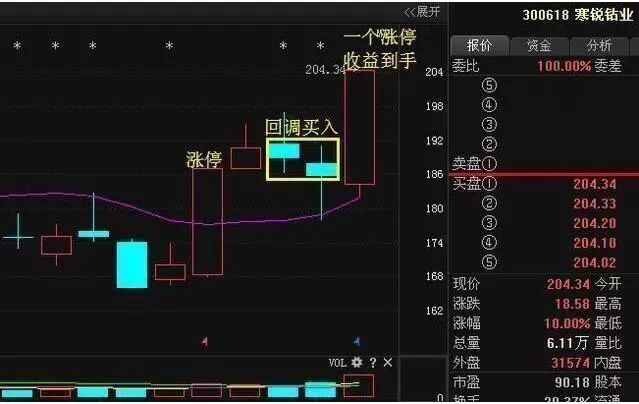 看上图寒锐钴业,6月20号涨停后连续2天回调,已经达到了战法所说的时间极限,确定了最佳介入点后涨停了,一只N字涨停股轻松抓住。
