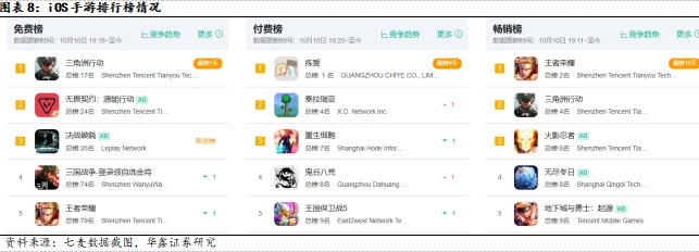 【国庆档】受国庆长假和密集营销活动推动,国内移动游戏市场流水大幅攀升。据初步估算,国庆一周(9月30日-10月6日)iOS游戏畅销榜TOP100产品总流水环比节前一周增长超过20%,而其中《王者荣耀》《和平精英》《原神》等头部产品通过推出限定活动,收入表现强劲。从小游戏来看,据DataEye,一款名为《我的花园世界》的模拟经营小游戏成为国庆档的黑马产品,在国庆期间持续占据人气榜TOP3以内的位置,并且在畅销榜中一路飙升。该游戏的发行和软著均显示归属于厦门麟贝互娱。