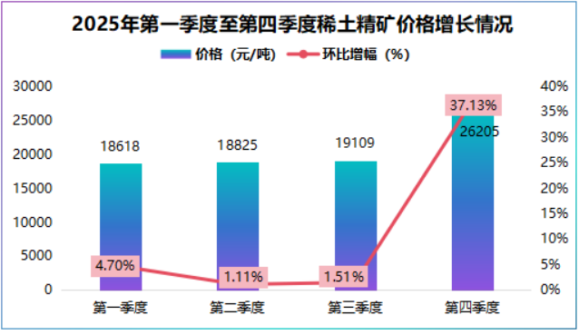 2025年9月底,氧化镨钕均价为56.2万元/吨,较6月底上涨了26.43%,带动了第四季度稀土精矿交易价格的上移。