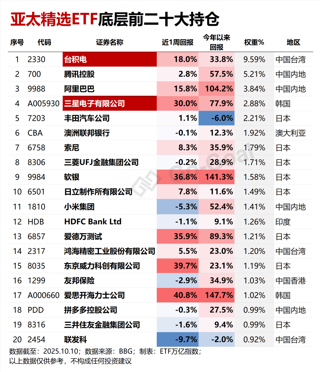亚太精选ETF(159687)作为国内市场唯一一只跟踪富时亚太低碳精选指数的ETF,提供了打包投资亚太核心资产的便捷途径。